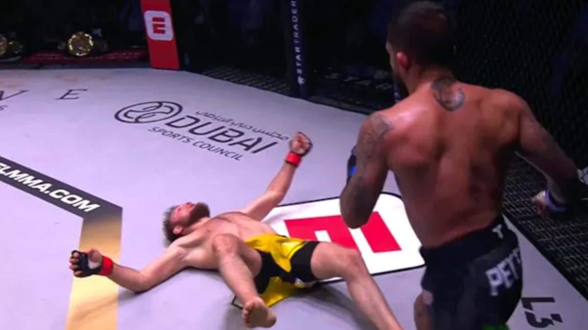 Mené au score, dominé au sol et sous la pression constante du protégé de Khabib Nurmagomedov, Sergio Pettis semblait promis à une nouvelle défaite. Mais à 4:31 du deuxième round, alors que Magomedov fonçait pour un énième takedown, l’Américain a parfaitement anticipé. Il pivote et déclenche un coup de coude retourné d’une précision chirurgicale. Magomedov s’effondre, K.-O. instantané. L’arbitre n’a eu que le temps de se jeter entre les deux combattants avant que Pettis n’ajoute un dernier coup au sol.